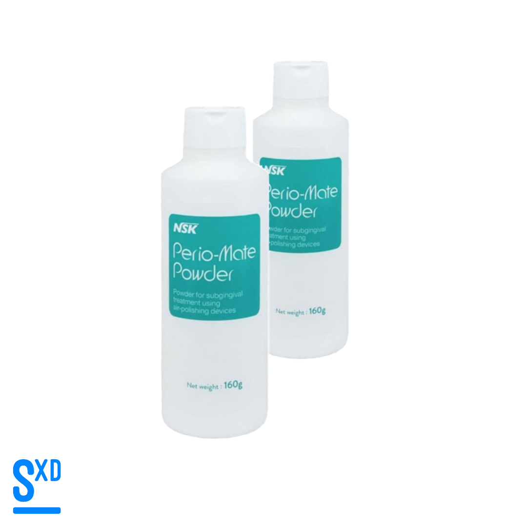 Perio-Mate Powder de NSK, un polvo de glicina ultrafina diseñado para limpiar eficazmente la biofilm subgingival sin dañar los tejidos blandos. Gracias a su formulación suave, es ideal para pacientes con encías sensibles, ofreciendo una experiencia de tratamiento mucho más agradable y menos invasiva. Utilizado junto al sistema Perio-Mate, mejora los resultados clínicos, promueve la salud periodontal y reduce la incomodidad durante y después de la sesión.