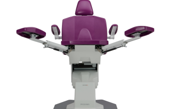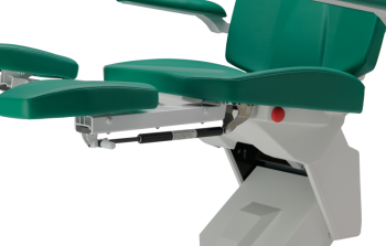 • Además, el nuevo y único sistema de frenos eléctricos permite al podólogo girar el sillón de hasta 350° y bloquearlo con un simple toque del botón.